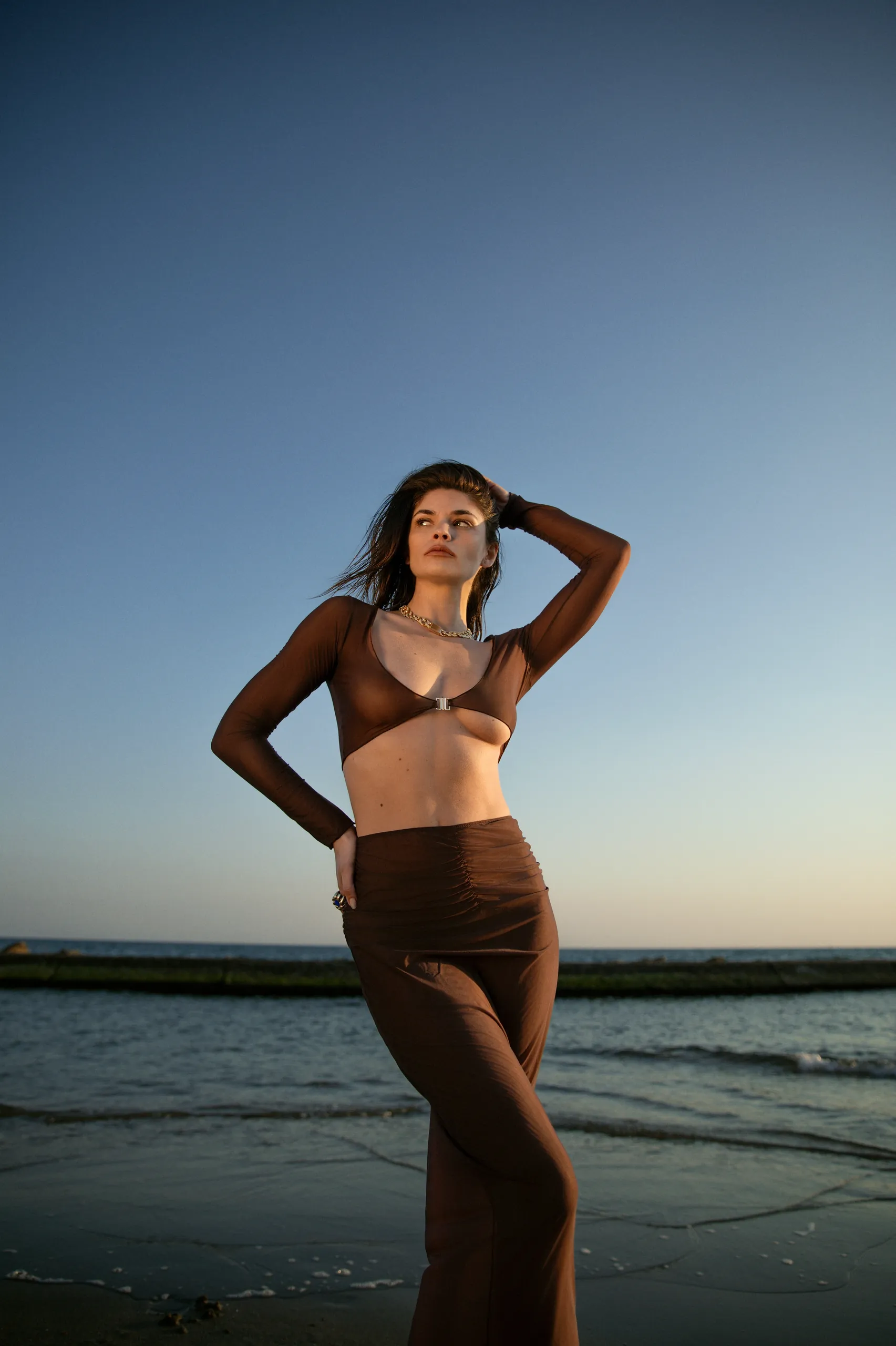 Top in tulle morbidoa manica lunga, leggero e sofisticato. Un capo versatile per completare